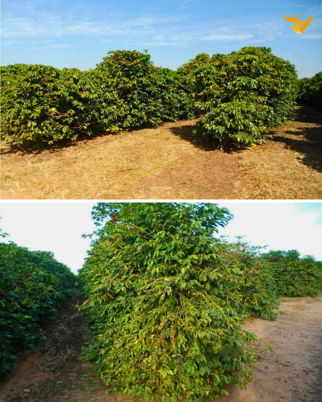 840 hectares cultivados, totalizando aproximadamente 3.000.000 de pés de café, das variedades: