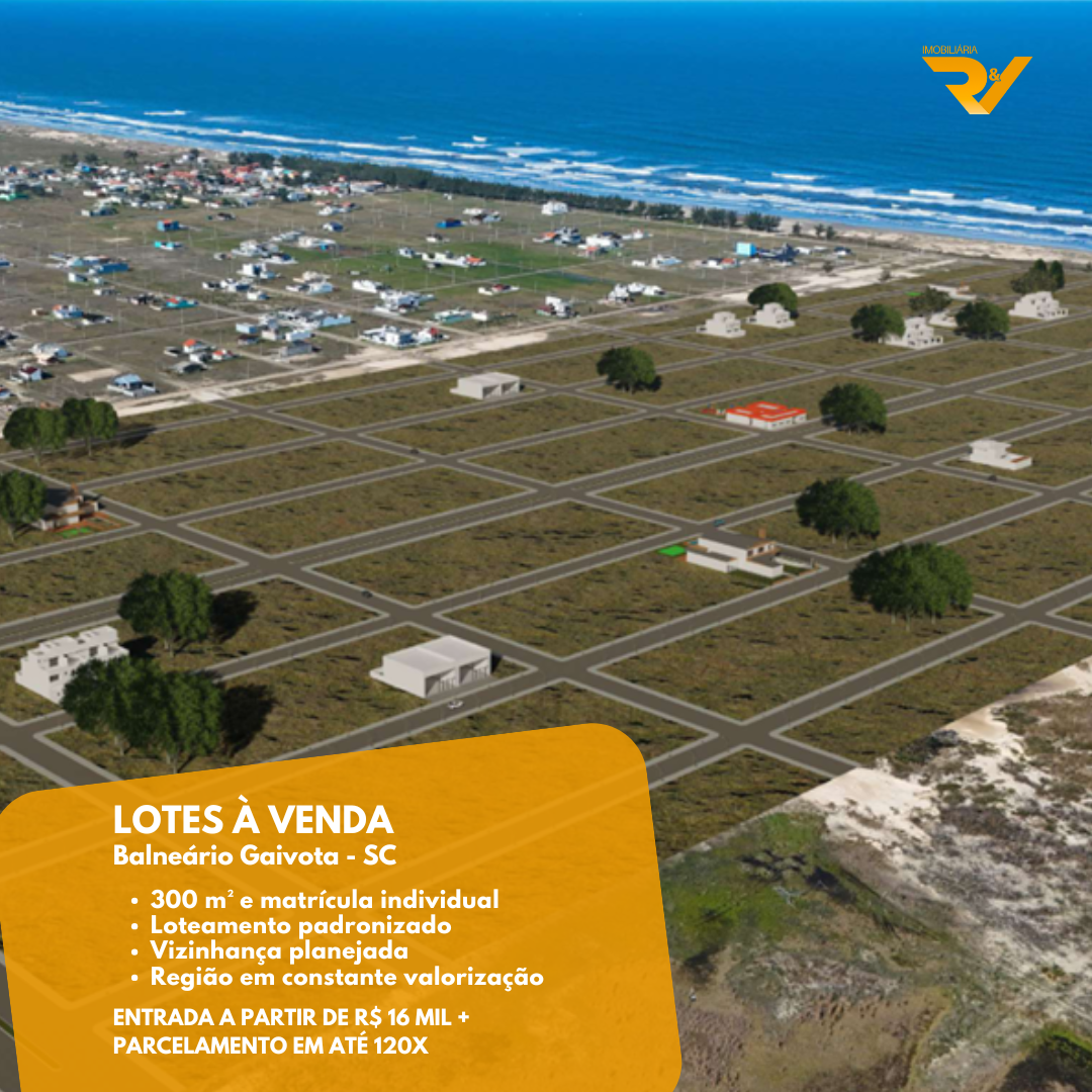 🌅 Loteamento padronizado com mais de 1.000 lotes exclusivos, localizado em Balneário Gaivota, a poucos minutos do centro e com acesso rápido às principais vias.